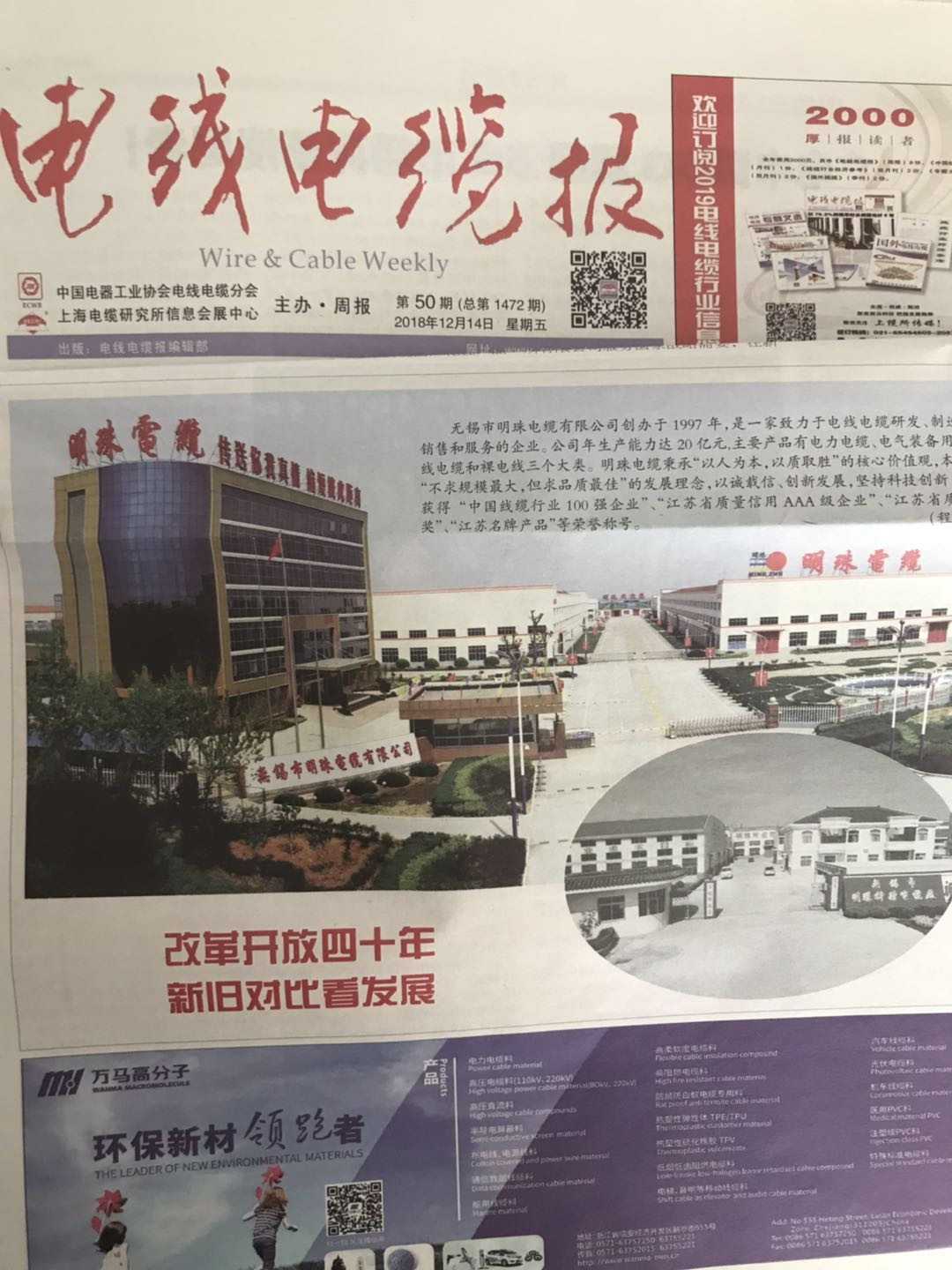 无锡市明珠电缆有限公司创办于1997年,是一家致力于电线电缆研发、制造、销售和服务的企业。公司占地15万平方米,员工500余名,各类生产和检测设备800余台套,年生产能力达30亿元。